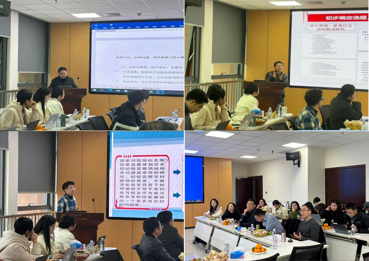 在31325报告厅举办国家社会科学基金项目辅导工作坊。学院院长田永秀、副院长谢瑜,胡子祥、王浩宇、颜军等教师及博士后参加了工作坊,副院长王菁主持。